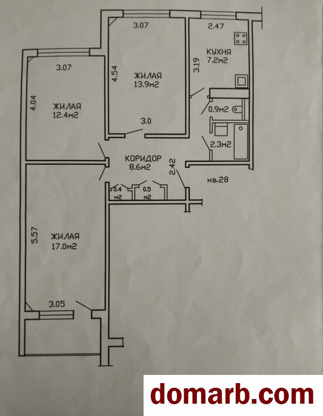 Общая площадь квартиры составляет 63,2 кв.м., площадь комнаты - 12,4 кв.м. Квартира находится на 7 этаже 9-этажного панельного дома 1989 года постройки. Высота потолков - 2,54 м.