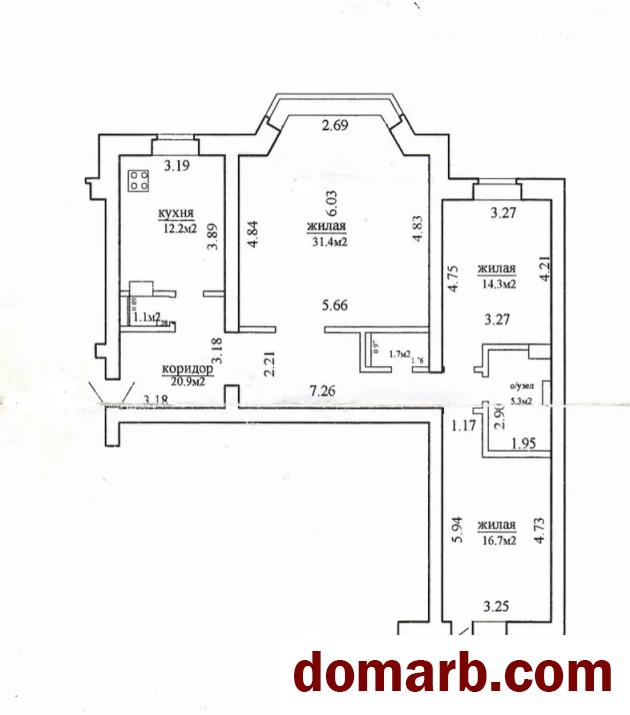 Общая площадь по СНБ — 107 м². Удобная планировка, 2 санузла. При необходимости возможно перепланировать в 4-х комнатную квартиру.