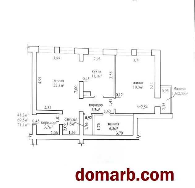 Общей площадью 69,5 м2., жилая 41.3 кв.м., кухня 11.1 кв.м. Квартира расположена на 2 этаже 7-ти этажного кирпичного дома.