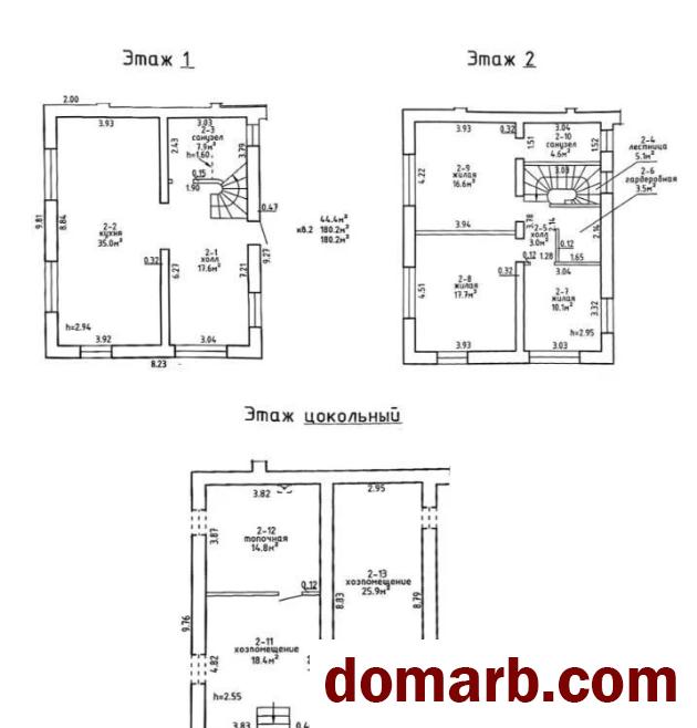 Общая площадь 180.2 м2. Высота потолков 2.94 м2