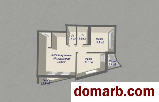 Общая площадь 66,9 кв. м., жилая площадь 60,2 кв. м., кухня-гостиная 34,8 кв. м., высота потолков 2.75 м.