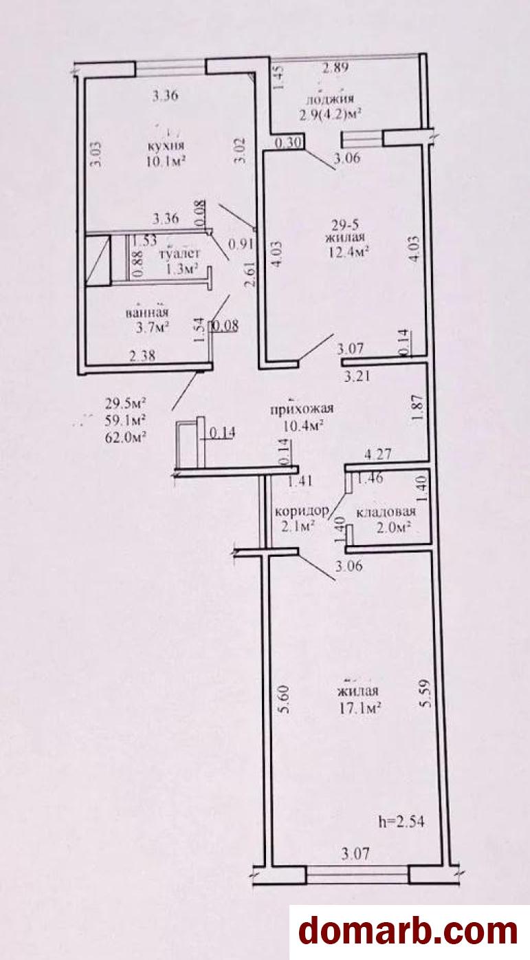 Квартира расположена на комфортном 3 этаже из 8. Общая площадь по СНБ 62 м2, жилая 29,5 м2, кухня 10,1 м2. Все комнаты раздельные. Есть кладовая.