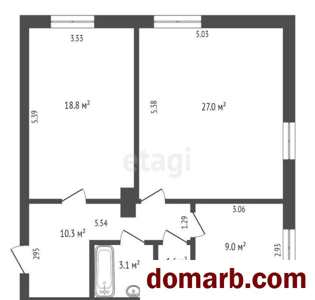 Общая площадь 69.8 м2Просторные комнаты 27. м2, 18.8 м2