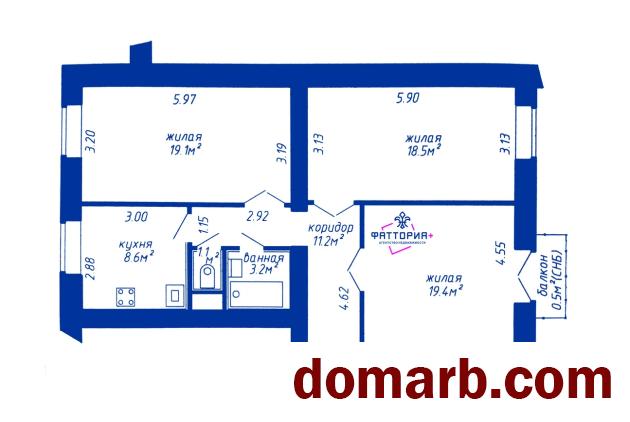 Отличная планировка: большие комнаты 19,4м, 19,1ми 18,5м, просторная кухня 8,3м. Раздельный санузел, балкон с видом на уютный двор.