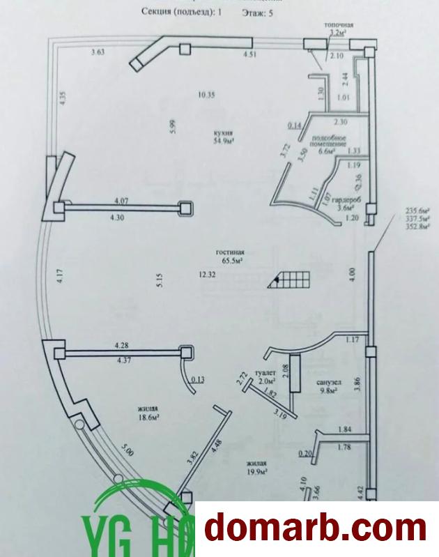• Площадь по СНБ — 352,8 м2, общая - 337,5 м2 , жилая площадь — 236,5 м2
