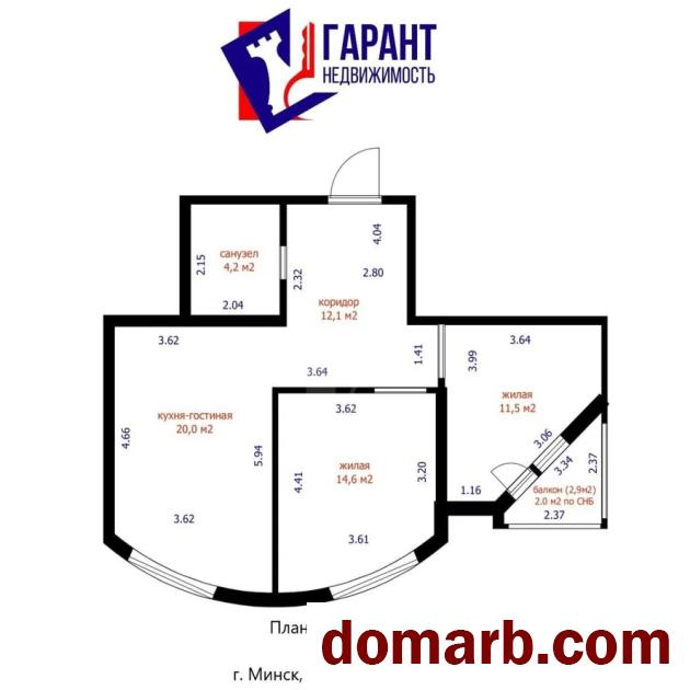 Общая площадь квартиры составляет 62.4 кв.м. (по СНБ 64.4 кв. метра).