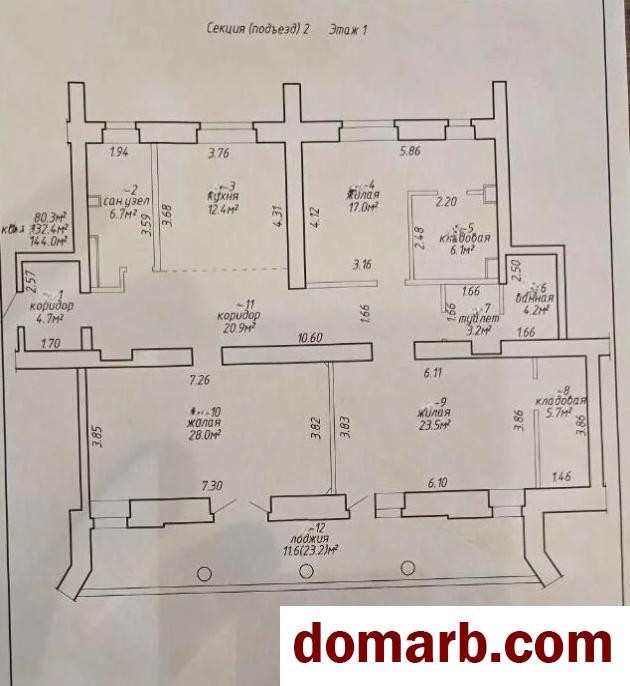 • Площадь по СНБ 144 м.кв., общая – 132,4 м.кв., жилая – 80,3м.кв.