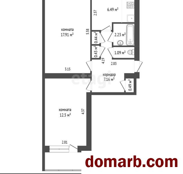 Комнаты: 17,91 м2 и 12,5 м2
