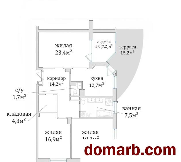 Просторная 3‑комнатная квартира в доме бизнес‑класса с черновой строительной отделкой: перегородки, разводка коммуникаций, стяжка (12 см с утеплителем), штукатурка стен.