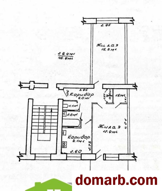 Площадь общая 46,9м2, жилая 29,4 м2, кухня 6,1 м2. Есть балкон. раздельный санузел. Окна выходят во двор и на улицу. Полы-доска, линолеум, в санузле- плитка. На кухне газовая колонка, что позволяет круглый год пользоваться горячей водой.