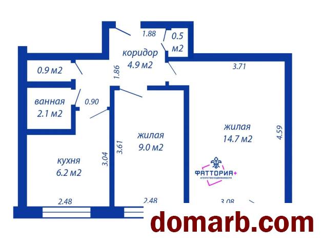 СНБ - 39,2м2 / общая - 38,3м2 / жилая - 23,7м2 / кухня - 6,2 м2
