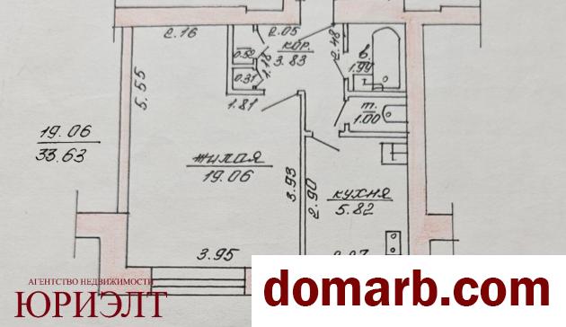 Общей площадью 33.63 м2, жилая 19.06 м2 с нишей, кухня 5.82 м2.