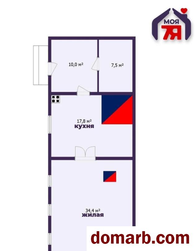 - Планировка дома состоит из одной жилой комнаты открытого пространства – 34,4 м2.