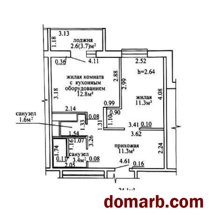 Потолки в квартире 2,64. Общая площадь по СНБ – 43 кв.м.