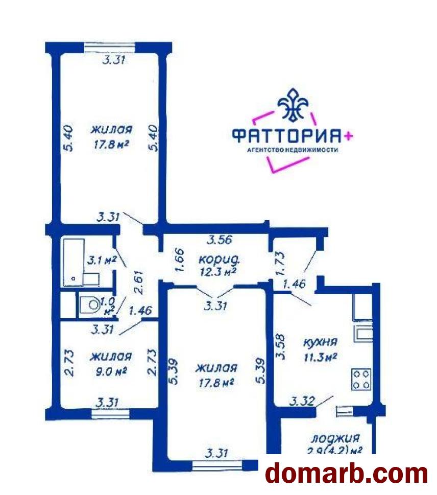 Планировка включает три раздельные жилые комнаты, метраж которых 17,8м2; 17,8м2 и 9м2,просторную кухню 11,3м2 с выходом на застеклённую лоджию и раздельный санузел.