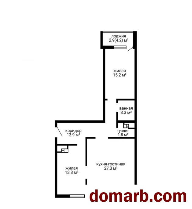Квартира расположена на 4 этаже монолитного жилого дома 2012 года постройки. Площадь квартиры по СНБ 78,2м2, общая площадь 75,3м2, две раздельные жилые комнаты 15,2м2 и 13,8м2, огромная кухня-гостиная 27,3м2.