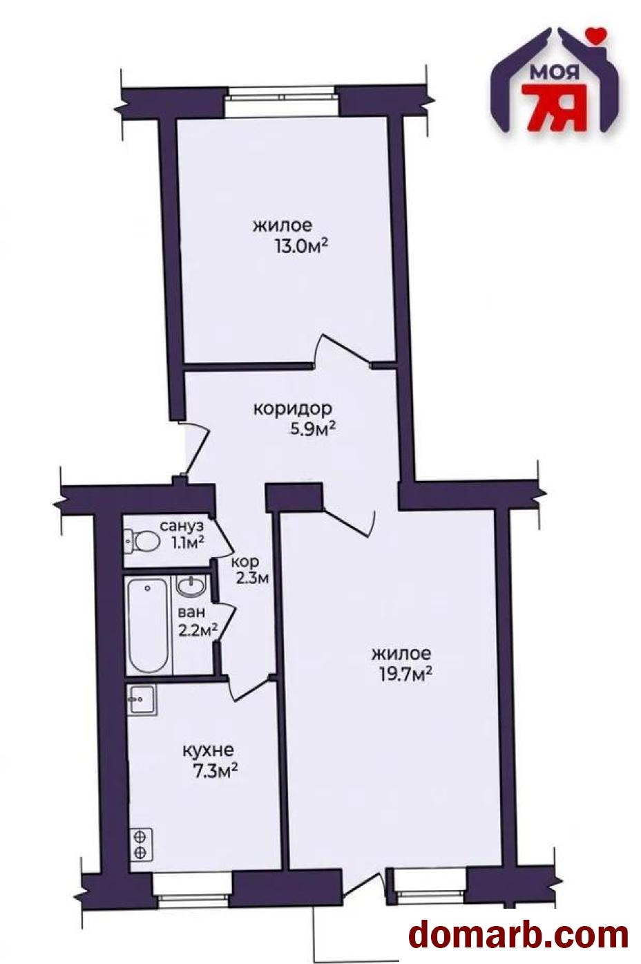 ❤️ Комфортная 2-комнатная квартира 51,5 м2 на 2-м этаже кирпичного дома 1972 года с удачной планировкой, раздельным санузлом, балконом в тихом районе Молодечно.