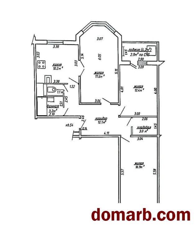 3 изолированные комнаты – 17,6 м2 (с эркерным окном), 12,4 м2 (с выходом на застекленную лоджию), 16,9 м2.