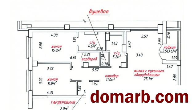 Две раздельные жилые комнаты: мастер - спальня 15,8 кв.м. со своей ванной комнатой и санузлом 4,6 кв.м., личной гардеробной; детская жилая комната 11,8 кв.м.; просторная кухня – гостиная 25,1 кв.м. с выходом на лоджию; второй санузел, совмещенный с просторной душевой 5,2 кв.м.; общая гардеробная.