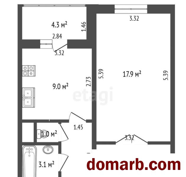 Общая площадь квартиры по СНБ — 43,3 кв.м, кухня — 9 кв.м. Современная планировка обеспечивает удобное и функциональное использование пространства. Санузел раздельный.