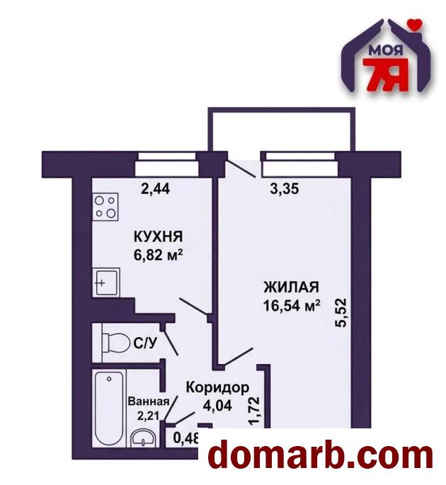 - Квартира расположена на 8 этаже 9-этажного кирпичного дома. Формат — 1-комнатная, общей площадью 33,68 м2, жилая — 16,54 м2. Из жилой комнаты есть выход на застеклённую лоджию, что добавляет дополнительное пространство для отдыха или хранения.