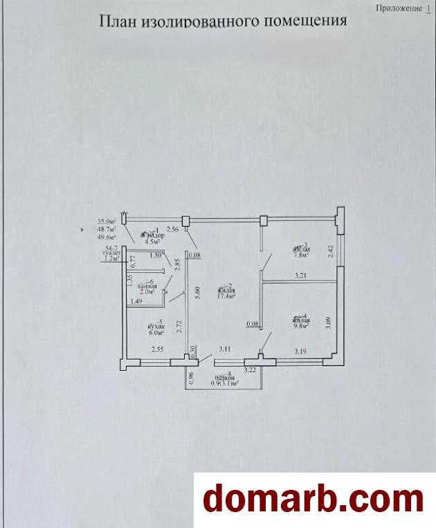 Площадь квартиры по СНБ 49,6 м2. (h-2,52м).