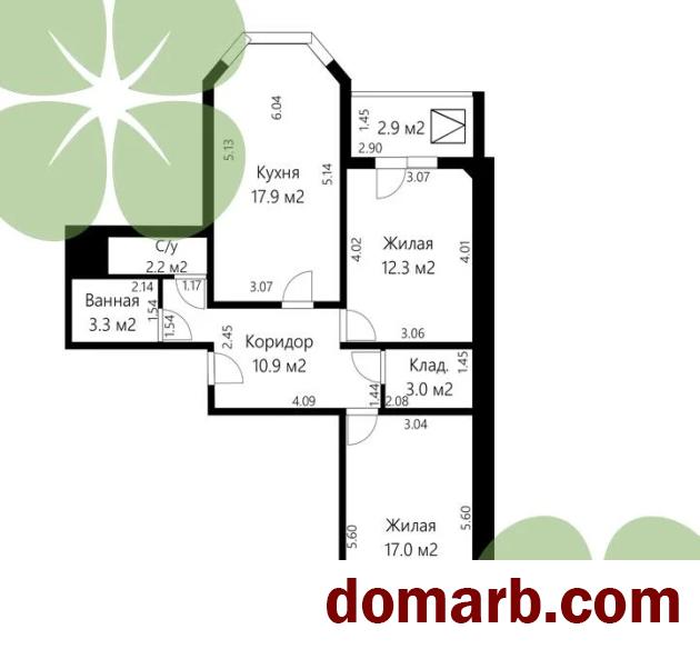 Комнаты -- 17 м2 и 12,3 м2.