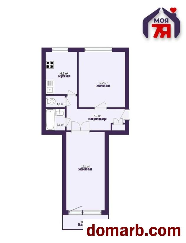 Двухкомнатная квартира на комфортном 2 этаже 5-этажного кирпичного дома в самом центре Солигорска. Общая площадь 48 м2, жилая — 30,3 м2, кухня — 6,9 м2.
