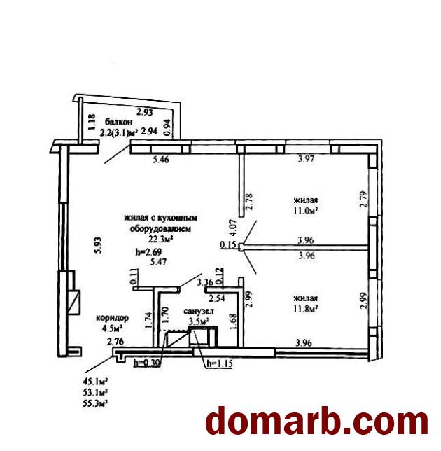 Квартира с расположена на 2 этаже 25-ти этажного каркасно-блочного дома. Общая площадь квартиры по СНБ – 55,3 м2, площадь без балкона и лоджии – 53,1 м2.