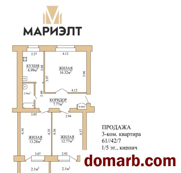 ✅ 3 жилые раздельные комнаты на две стороны (12,77, 13,28 с лоджиями – на юг, на улицу, 16,32 - на север, во двор)