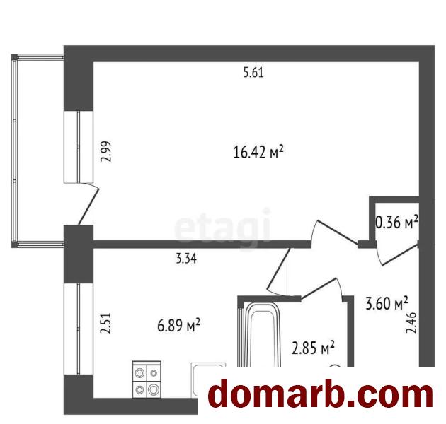 Площадь по СНБ – 30,92 кв.м. Жилая – 16,42. Кухня – 6,89.