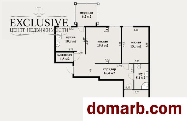 Квартира имеет очень удачную грамотную планировку - три просторные комнаты 19.4, 15.6 и 15 кв.метров, кухня площадью 10.8 кв.метра с выходом на веранду ( 6.2 кв.м.), большой сан. узел , просторный коридор и кладовую с технической возможностью переоборудования в гостевой туалет.