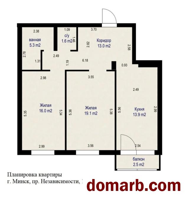 Общая площадь 68,9 кв. м., жилая площадь 35,1 кв. м, кухня 13,9 кв. м. высота потолков 2.70 м., просторный балкон.