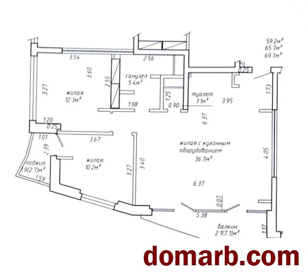 Общая площадь по СНБ – 69,7 м2, жилая площадь – 59,2 м2.