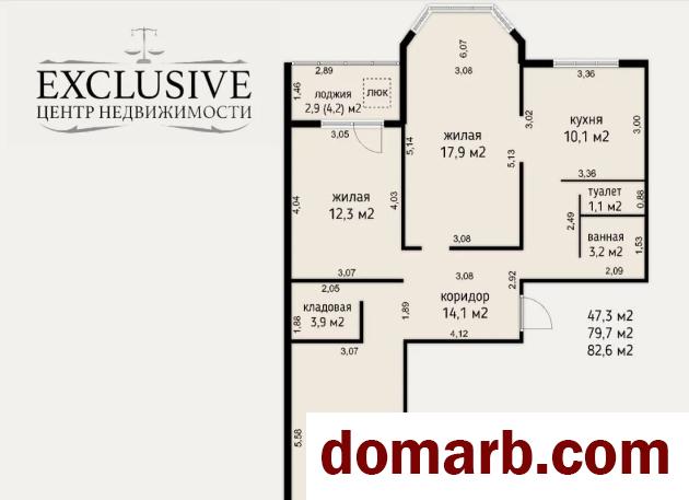 Общая площадь квартиры - 79.7 кв.м.