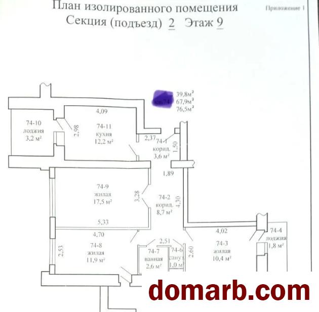 Общая площадь квартиры 76,5 м кв, все комнаты раздельные, санузел раздельный, две лоджии, один балкон, большая кухня площадью 12,2 м кв с выходом на лоджию.
