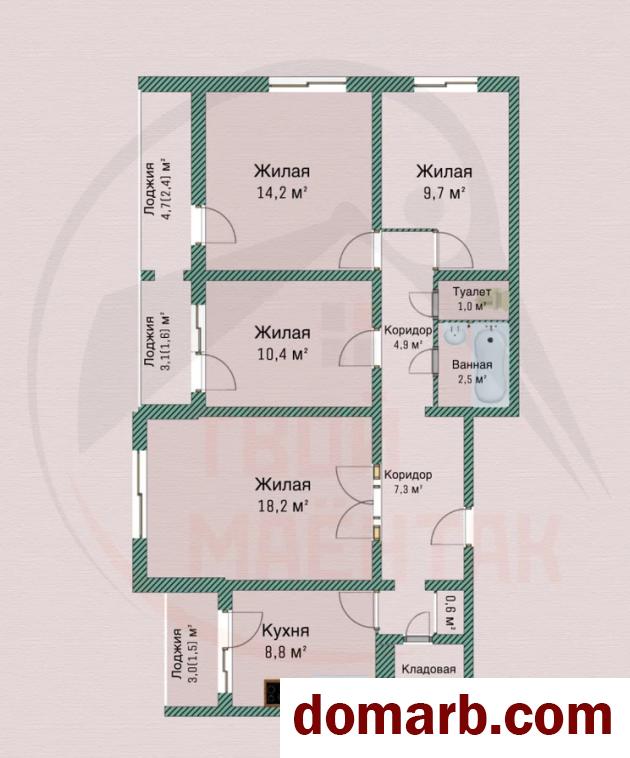 Общая площадь: 79.1 кв.м, жилая площадь 52.5 кв.м., кухня 8.8 кв.м., СНБ 84.6 кв.м. Высота потолков : 2.66 м.