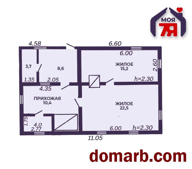 -Одноуровневый бревенчатый дом, построенный в 1960 году, имеет общую площадь 52,1 квадратных метра. Планировка включает две жилые комнаты, функциональное распределение пространства для комфортной жизни семьи или одного человека.