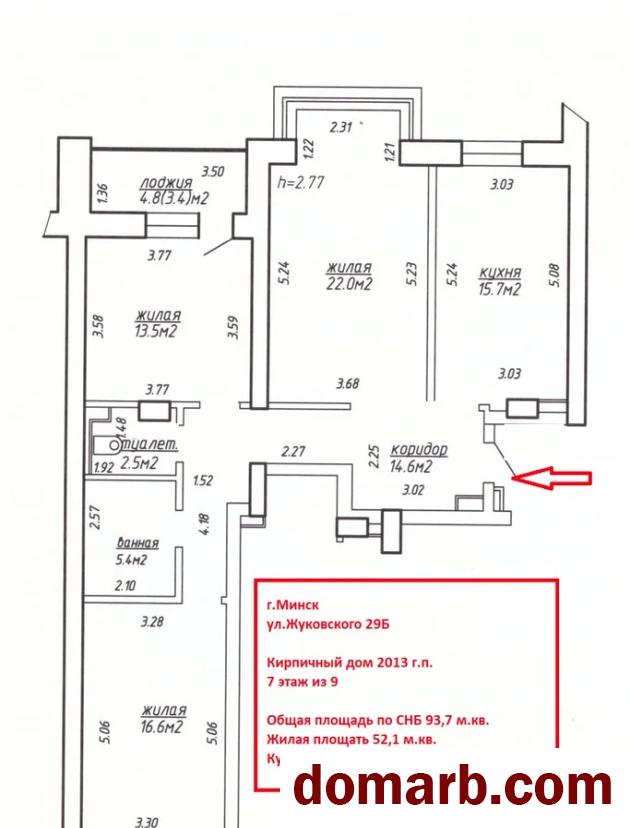 общая площадь по СНБ: 93,7 м2;