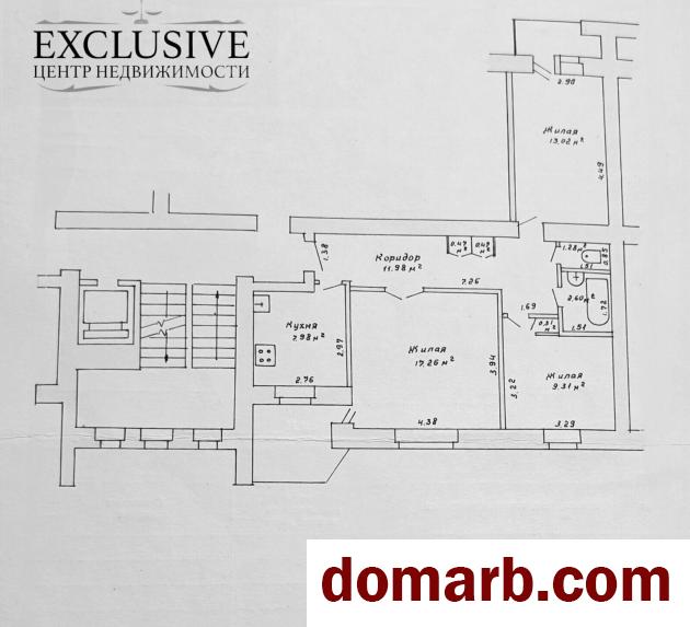 - жилая площадь - 46,7 м², три изолированные комнаты: 17,26 м², 9,31 м², 13,02 м²