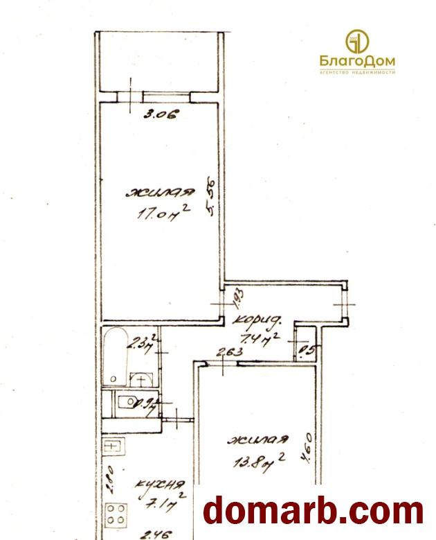 Две комфортные раздельные комнаты (17,0 кв.м и 13.8 кв.м.). Из комнаты выход на остекленную лоджию. Высота потолков 2,54 метра. Кухня 7,1 кв.м., санузел раздельный. Квартира расположена на 9 этаже 9-ти этажного дома, сверху – технический этаж.