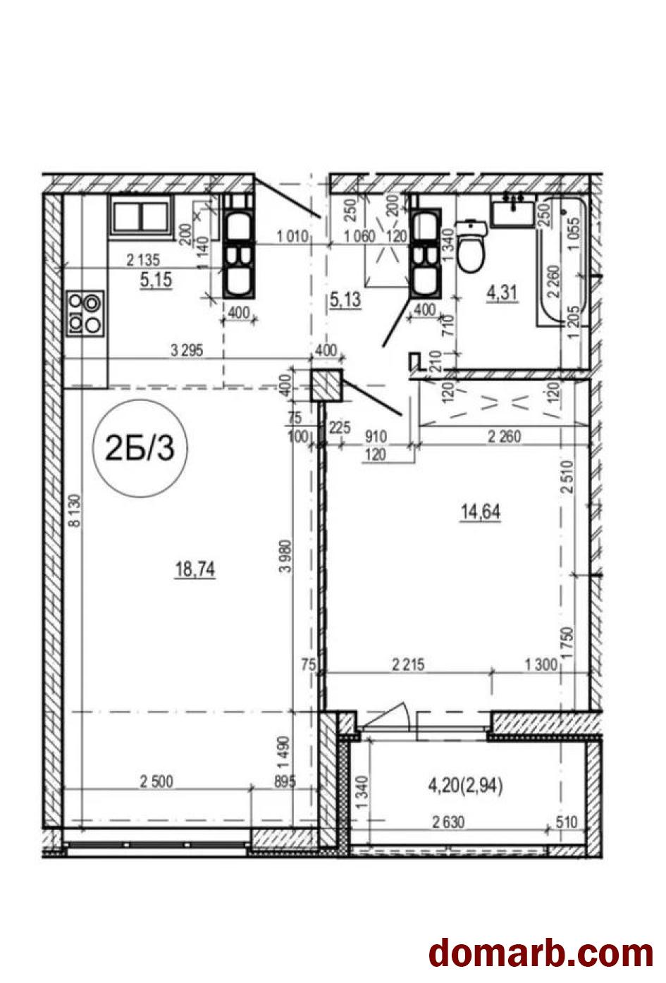 - площадь по СНБ: 51,2 м²;