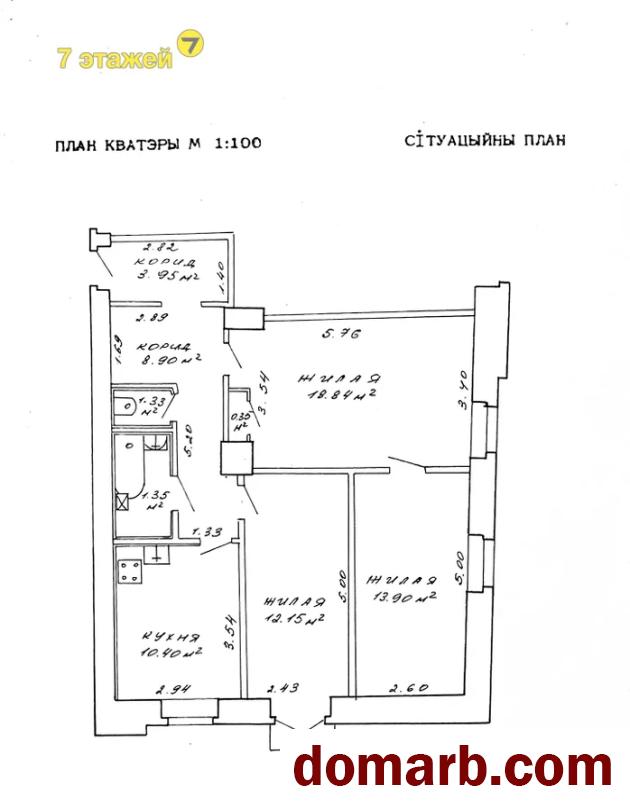 Фактическая площадь квартиры - 71,21кв.м.; жилая пл. -44.89кв.м. Согласно имеющегося тех.паспорта (старого образца): общая площадь – 64,4кв.м.; жилая – 35кв.м., с тремя просторными изолированными комнатами (одна из них смежная); больная кухня – 10.4кв.м., просторный коридор.