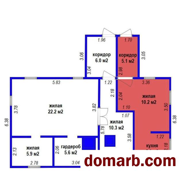 - Общая площадь дома 44,8 кв. м., жилая площадь 28,1 кв. м., площадь кухни 8 кв. м , гардероб 5,6 кв. м.