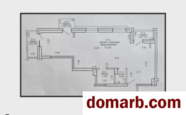 ►Балкон — 0,6 кв.м по СНБ (2,1 кв.м)