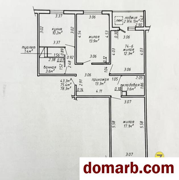 Площадь общая: 78,3 м2 (по СНБ)
