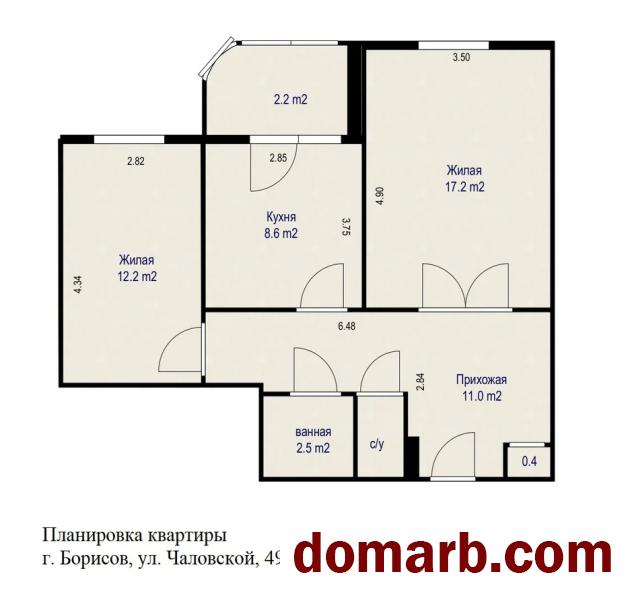 -жилые комнаты: 17,2м кв. и 12,2 м кв.,