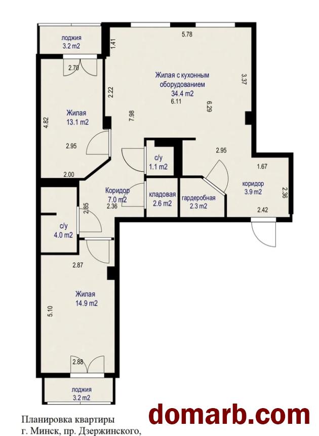Отличная планировка: общая площадь по СНБ – 87,7 м2, жилая площадь 64,7 м2, большая лоджия - 3,2 м2, спальня- 14,9 м2, вторая изолированная комната назначением спальня/кабинет/детская -12,5 м.2.