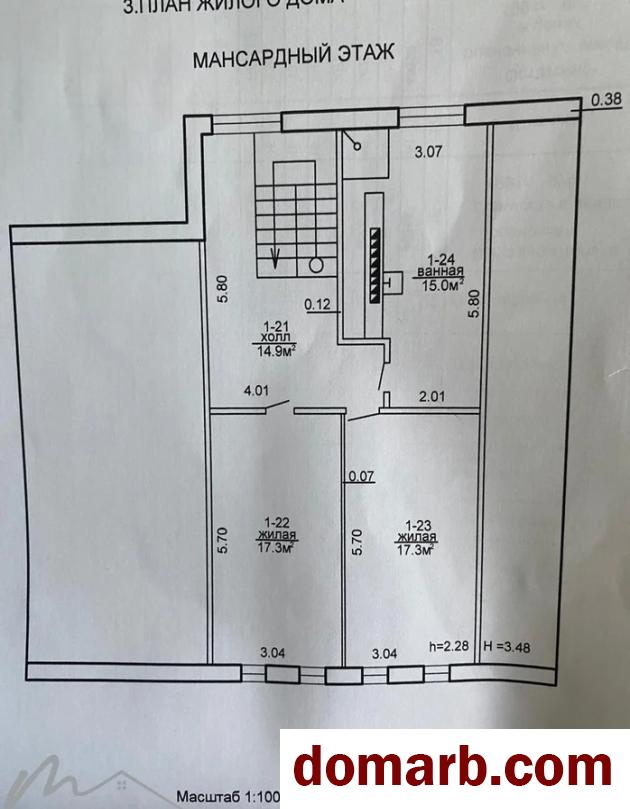 На 3 -м этаже расположены ещё 2 жилые комнаты 17.3, 17.3 м2 и кухня с санузлом 15м2