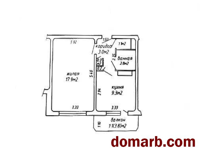 Общая площадь квартиры по СНБ — 35,7 кв. м, жилая комната — 17,9 кв. м, кухня — 9,3 кв. м. Санузел раздельный.